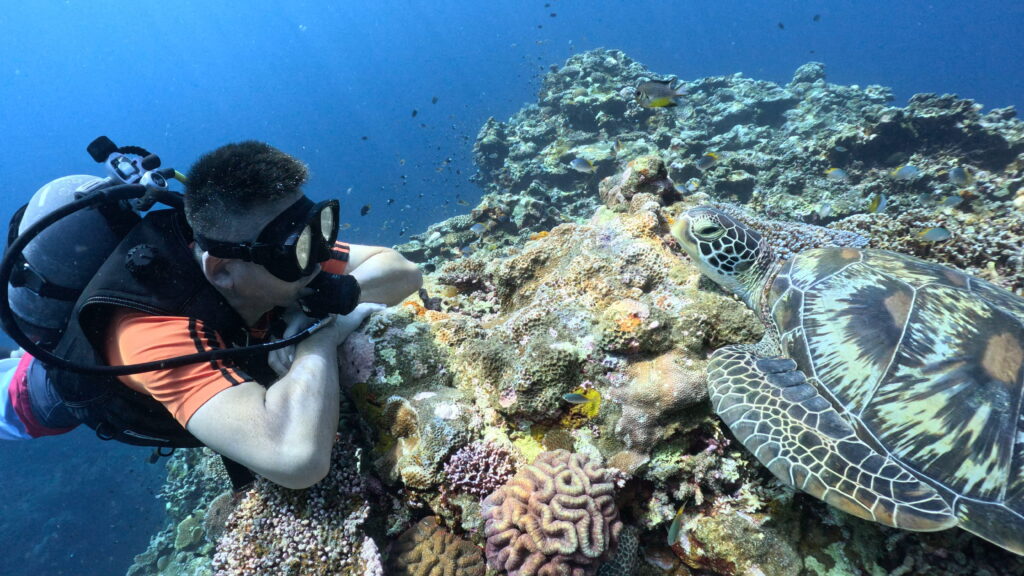 ここのアオウミガメは人慣れしてきてるよね〜?