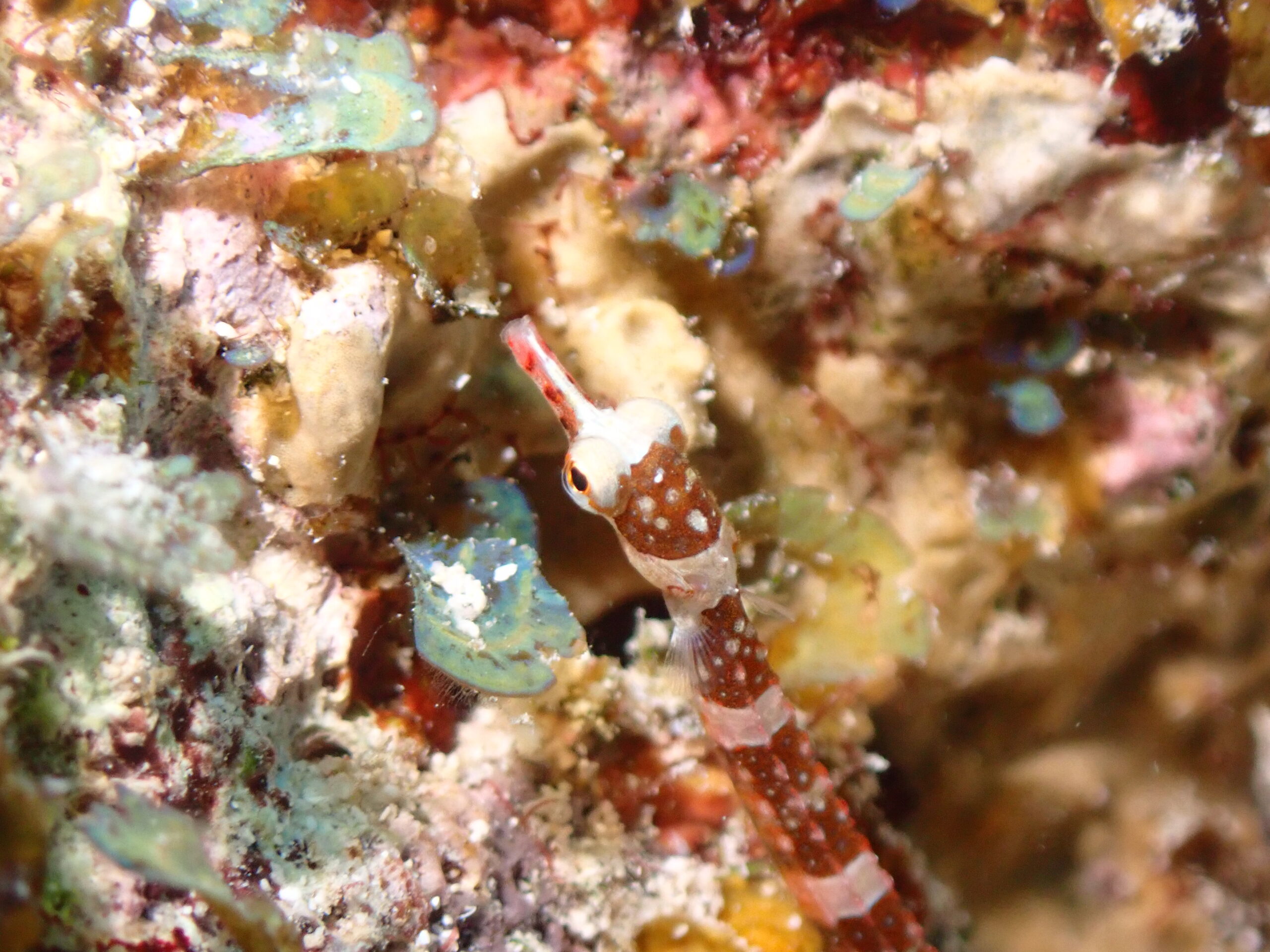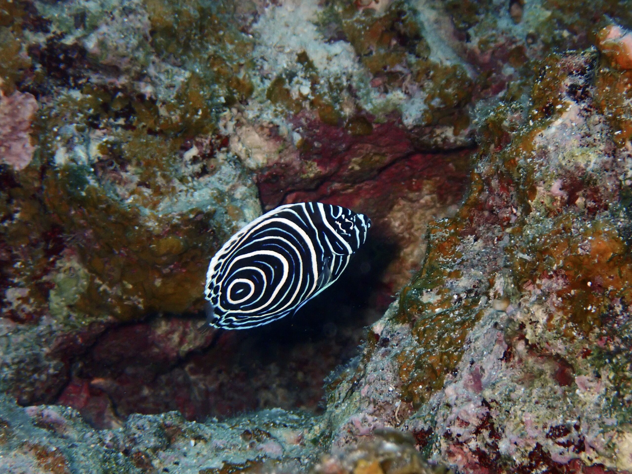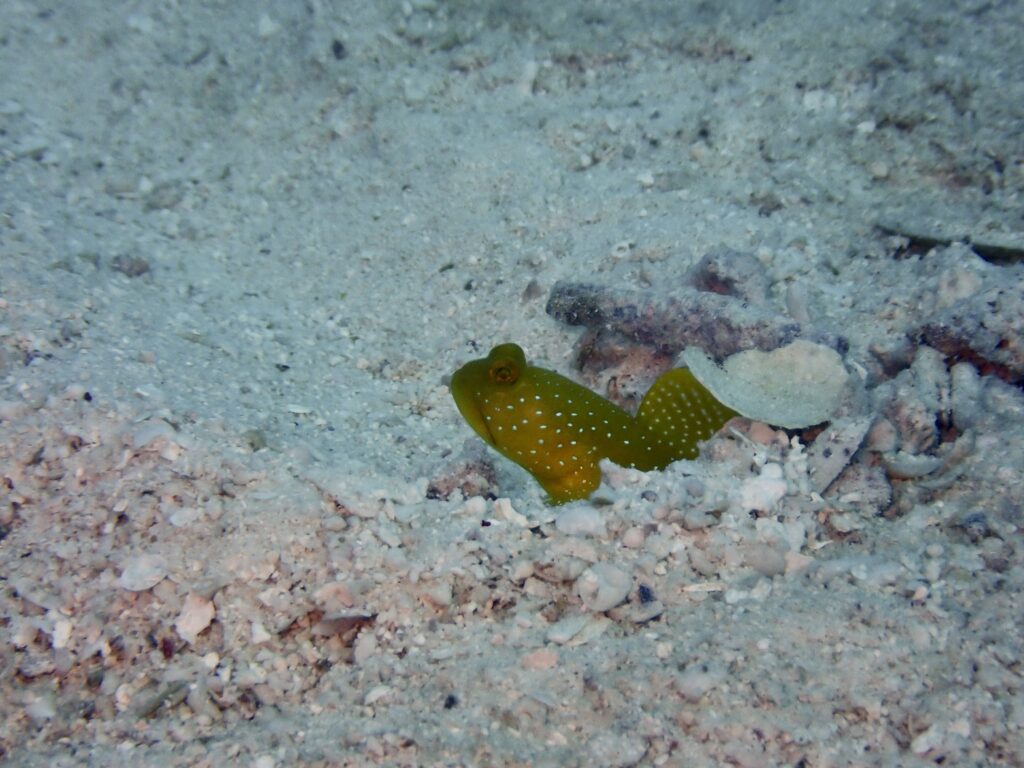 これでもかってぐらい穴の外に出てたタテジマキンチャクダイ幼魚