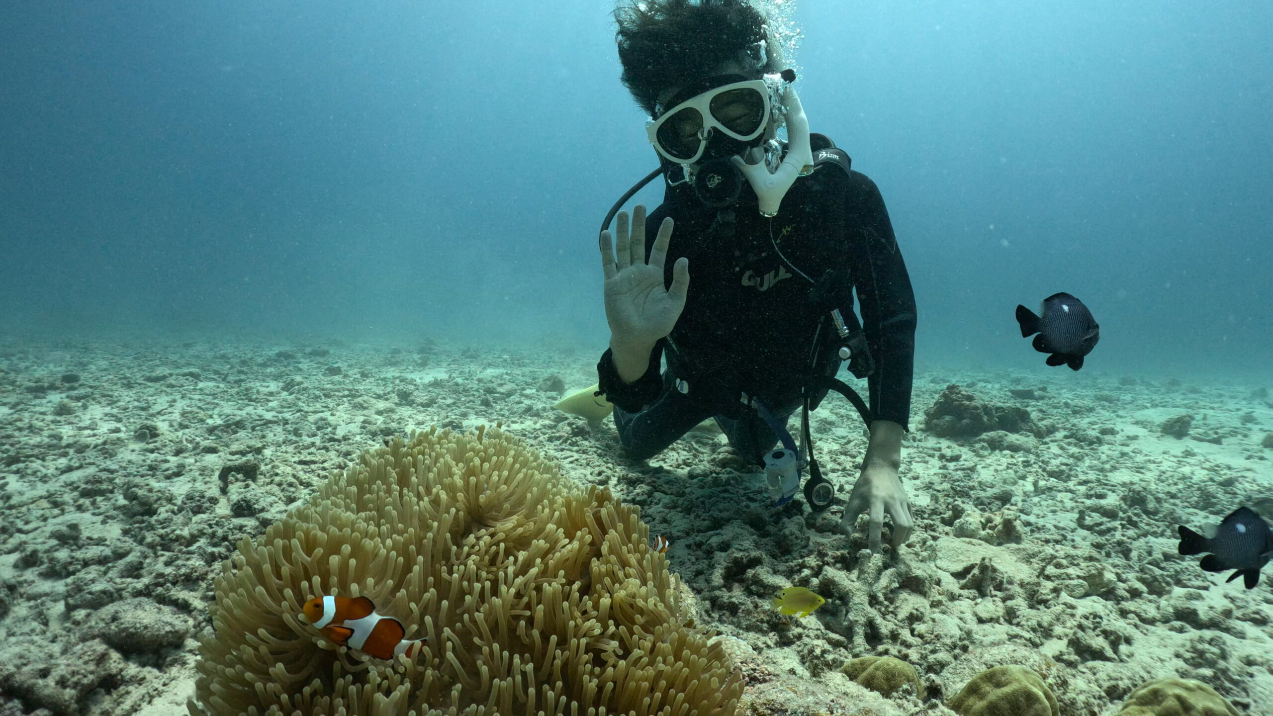 浅いサンゴエリアではデバスズメダイシャワー!