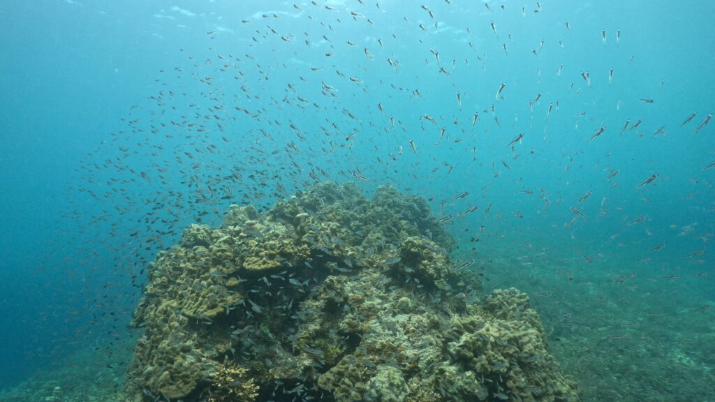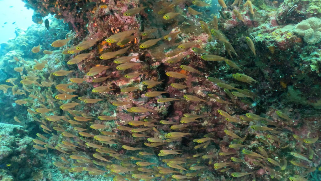 コガネシマアジは群れ群れ!
